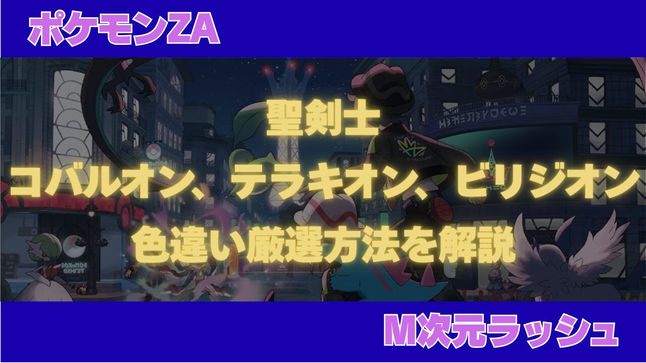 今回は、聖剣士(コバルオン・テラキオン・ビリジオン)の色違い厳選について解説しました。